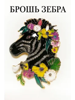 Брошь Зебра украшение со стразами