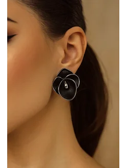Серьги Цветы черные крупные