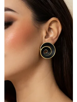 Серьги Черные крупные стильные спирали