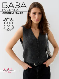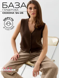 Жилетка вязаная трикотажная шерстяная теплая на пуговицах
