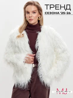 Шуба короткая искусственная кудрявая под ламу волосатая