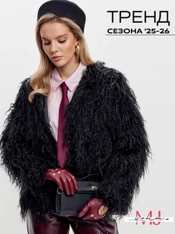 Шуба короткая искусственная под ламу волосатая кудрявая
