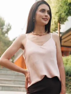 Топ шелковый на бретелях под пиджак из тенселя