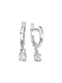 Ювелирные серьги круглые с фианитом серебро 925
