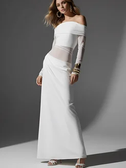 Платье с сеткой вечернее с открытыми плечами