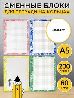 Сменный блок для тетради на кольцах А5 200 листов цветной