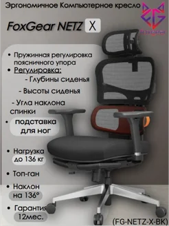 Компьютерное кресло NETZ, X, черный (FG-NETZ-X-BK)
