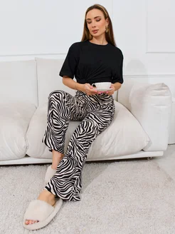 Домашний костюм футболка оверсайз с печатью и брюки палаццо