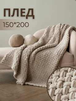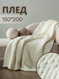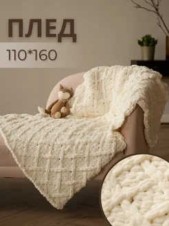 Вязаный пушистый плед ручной работы в гостиную в детскую
