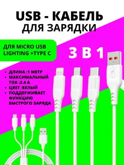 Кабель для зарядки 3 в 1 USB (lightnight, Type-C, micro-usb)
