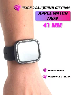 Чехол на Apple Watch со стразами и стеклом (41 мм)