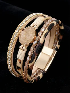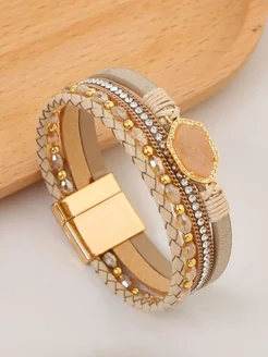 Браслет кожаный Boho с камнем на руку бижутерия широкий