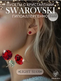 Серьги бижутерия пусеты гвоздики сваровски swarovski 6 мм