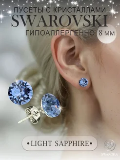 Серьги бижутерия пусеты гвоздики сваровски swarovski 8 мм