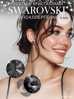 Серьги гвоздики пусеты с кристаллами Swarovski 10 мм