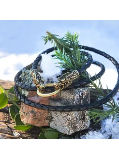 Шнур на шею бронзовый "Волки"