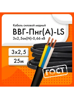 Силовой кабель ВВГ-Пнг(А)-LS 3 x 2.5 мм², 25 м