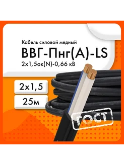 Кабель силовой ВВГ-Пнг(А)-LS 2х1,5 (ГОСТ 31996-2012)бухта25м