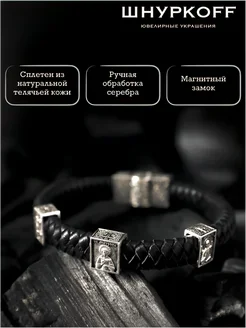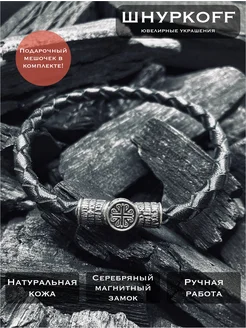 Серебряный кожаный Браслет на руку 925
