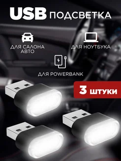 USB подсветка в машину для автомобиля в салон авто 3 шт