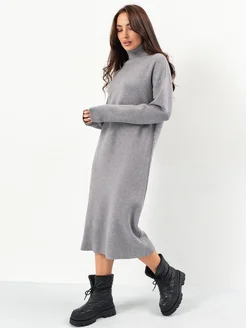 Платье теплое трикотажное длинное