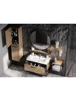 Тумба с раковиной в ванную подвесная Лофт Фабрик 80 см, дуб