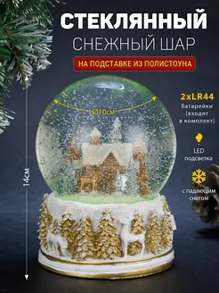 Снежный шар новогодний с подсветкой Домики D=10 см