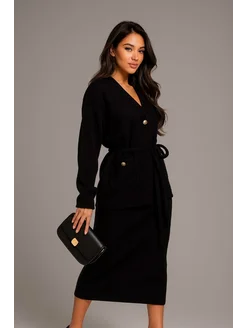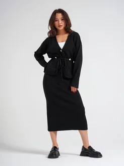 Тёплый трикотажный костюм с юбкой двойка как в Pinterest
