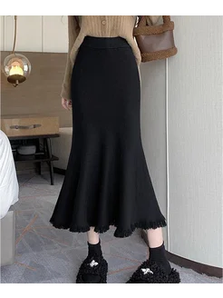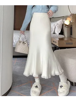 Теплая юбка длинная годе рыбка с бахромой как в Pinterest