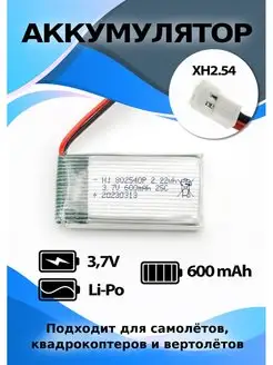 Аккумулятор 3,7V 600 mAh разъем XH2.54