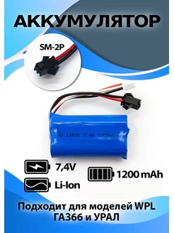 Аккумулятор 7.4 V 1200 mAh разъем SM-2P
