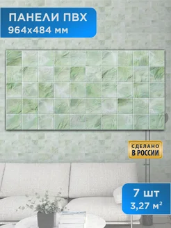 Панель ПВХ Плитка перламутровая зелёная, 7шт, 3,27 кв.м