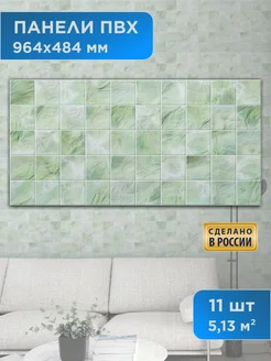 Панель ПВХ Плитка перламутровая зелёная, 11шт, 5,13 кв.м