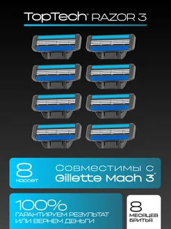 8 сменных кассет для бритья, 3 лезвия, для бритвы