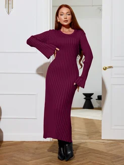 Платье вязаное миди с длинными рукавами