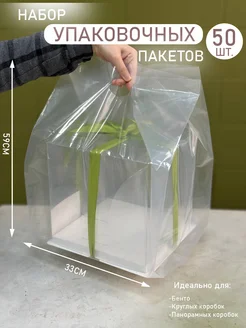 Подарочный прозрачный пакет с ручками для упаковки торта