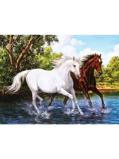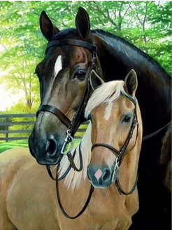 Алмазная мозаика 45х55 без подрамника "Пара Лошадей"