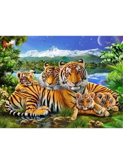 Алмазная мозаика на подрамнике "Семья тигров" 30х40 см