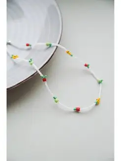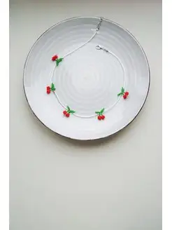 Колье чокер с ягодами вишни на шею молочное девушкам