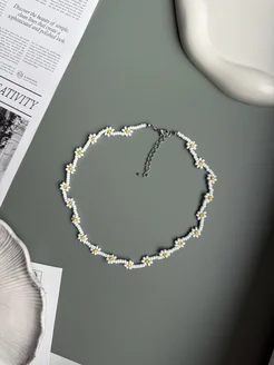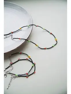 Колье чокер с ягодами из бисера на шею черный с подсолнухом