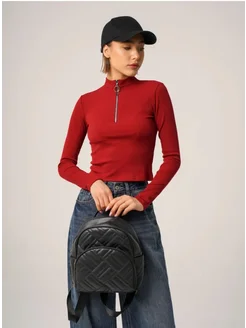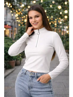 Лонгслив облегающий в рубчик с вырезом и молнией