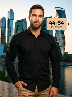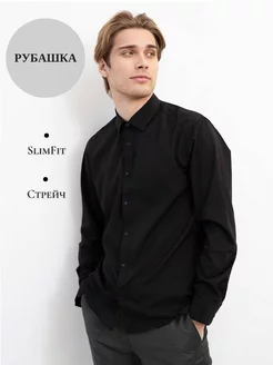 Рубашка черная приталенная с длинным рукавом
