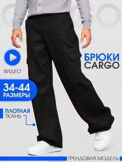 Штаны карго школьные на резинке для подростка черные
