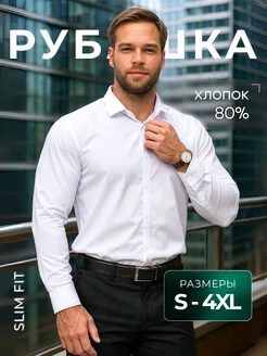Рубашка белая приталенная с длинным рукавом на кнопках