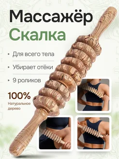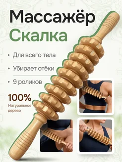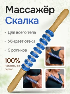 Массажер для тела деревянный роликовый скалка антицеллюлит