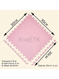 Мягкий пол пазл 30*30*2,5см, Розовый *4детали EVA коврик