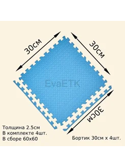 Мягкий пол пазл 30*30*2,5см, Голубой *4детали EVA коврик