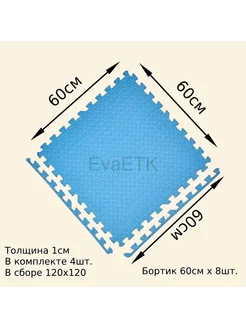 Мягкий пол 120*120см голубой Eva коврик-пазл 60*60*10см-4шт