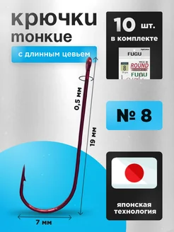 Крючки рыболовные № 8 с ушком тонкий Набор 20 шт