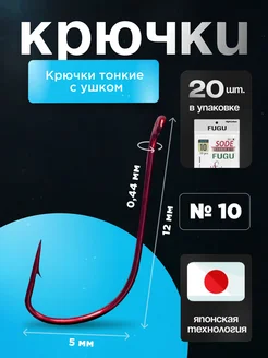 Крючки красные № 10 с ушком тонкий Набор 20 шт